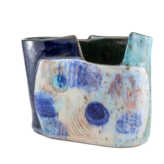 6.5" Abstract Artisan Ceramic Vase and Hold-All - Blue, White, TealRegular price $54.00 USDRegular priceUnit price / per-