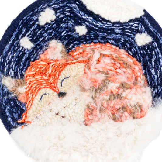 "Sleeping Fox Under a Winter Sky" Original Punch Needle Embroidery Wall Art 8.5" RoundRegular price $32.00 USDRegular priceUnit price / per-