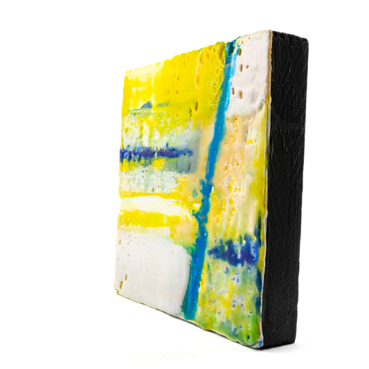 4.5" Abstract Encaustic Painting, Yellow Teal White BlueRegular price $35.00 USDRegular priceUnit price / per-